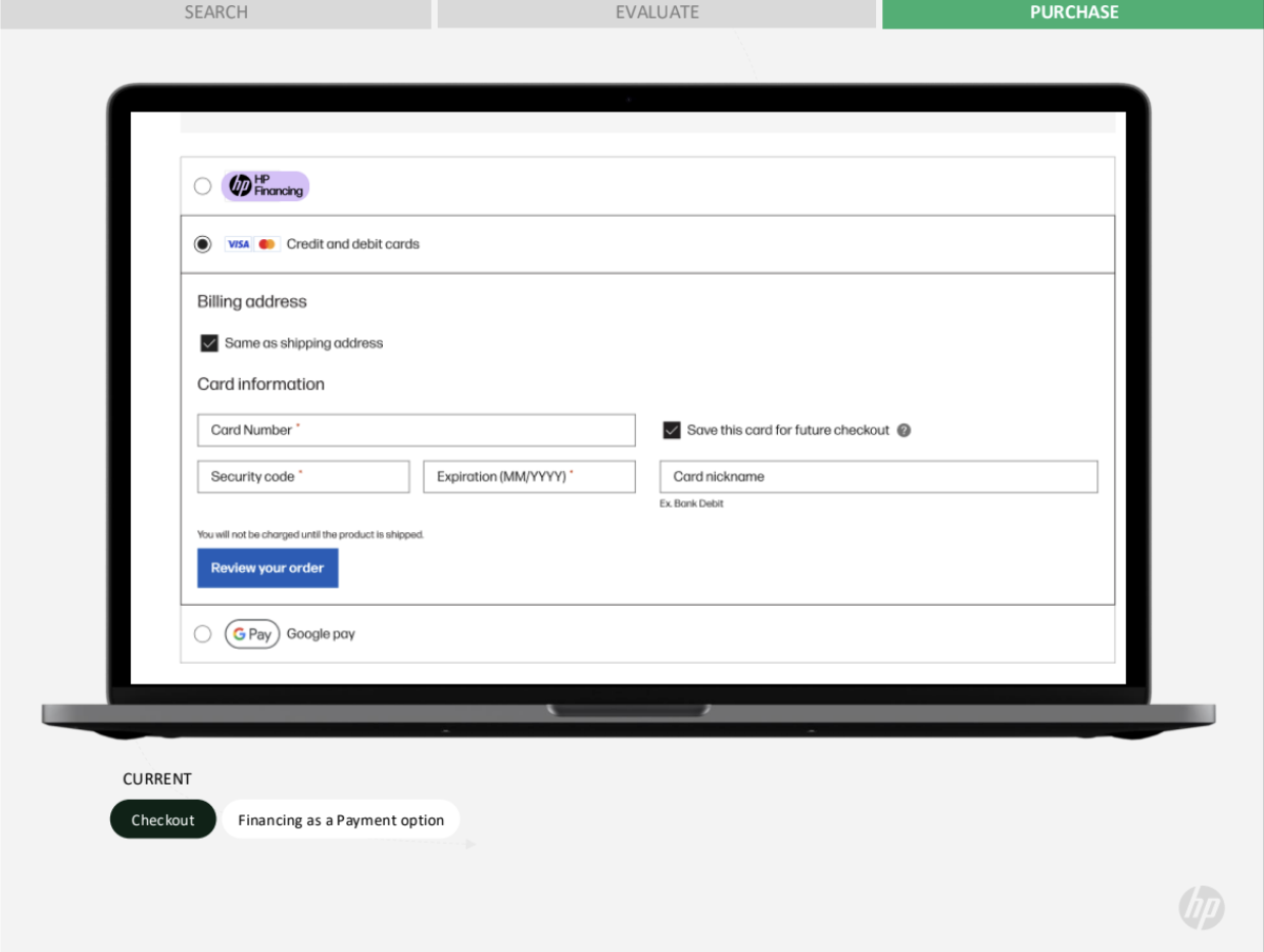 I led the UX strategy for integrating BNPL into HP’s eCommerce experience and my responsibilities included: